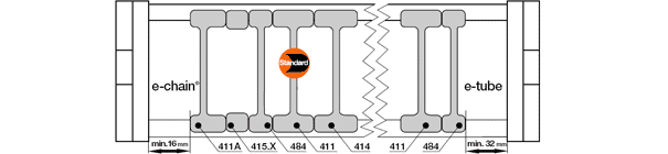 E-ChainSystem®을 개별적으로 구성할 수 있습니다. 페이지 끝에 있는 부품 목록에서 모든 입력과 변경이 이루어 집니다.