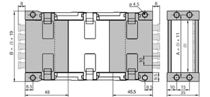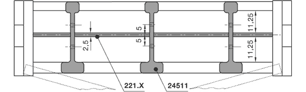 글라이드 슈는 에너지체인의 고정단으로부터 20번째 체인 링크마다 조립되어 있습니다. 체인 링크 조립됨.