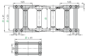 E-ChainSystem®을 개별적으로 구성할 수 있습니다. 페이지 끝에 있는 부품 목록에서 모든 입력과 변경이 이루어 집니다.