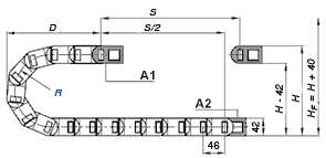 E-ChainSystem®을 개별적으로 구성할 수 있습니다. 페이지 끝에 있는 부품 목록에서 모든 입력과 변경이 이루어 집니다.