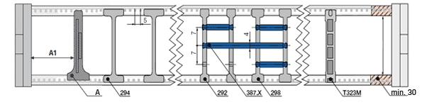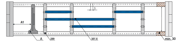 옵션 02특별하고 최상의 변종식 분리 용도로 시험을 통해 검증된 내부 분리 부품 A = 중간 링크 A1 = A1 치수는 외부 반지름 AR에 의해 고정되었습니다! 중간 가로분리대 386.X과 같이 사용되는 스플릿 분리대 T323 - 지속 분리용 또는 E-Chain®의 초기 조립용에 최상으로 적합. 힌지/푸시형 구조로 신속한 조립 및 분해 조립 시간 단축 유연성 증대 사이드 플레이트 286, 분리대 288 및 중간 가로분리대 386.X 는 분리 시스템의 기본 형태를 구성합니다. 7 mm 높이의 그리드에서 다양한 폭의 중간 가로분리대를 3 단으로 배치할 수 있습니다. 특수용: 사출몰드형 가로분리대 281.S.57 (57.5 mm) 또는 281.S.45 (45 mm). 매우 정교한 분리 솔루션에는 높이 슬롯형 분리대 291이 사용됩니다 (e튜브용은 아님). 하지만 내부 분리를 분해하지 않은 기존의 분리 시스템에서는 이 분리대를 통합시켜 지속적으로 사용할 수 없습니다. 매우 정교한 분리 솔루션에는 높이 슬롯형 분리대 291이 사용됩니다 (e튜브용은 아님). 하지만 내부 분리를 분해하지 않은 기존의 분리 시스템에서는 이 분리대를 통합시켜 지속적으로 사용할 수 없습니다. 한쪽 개방식 , 슬롯형 분리대 297 은 내부 분리대를 분해하지 않고도 기존의 내부 분리 시스템에 장착할 수 있습니다. 개방식 높이 슬롯형 분리대 설치시, 상부와 바닥 그리드의 레벨에서는 중간 가로분리대를 장착할 수 없습니다.
