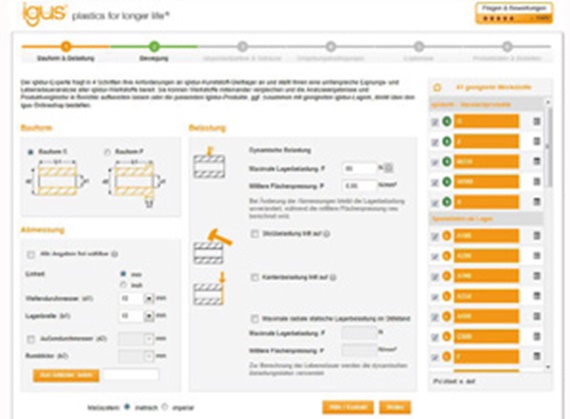iglidur® expert 2.0: 온라인에서 검색하여 사용 수명을 계산합니다.