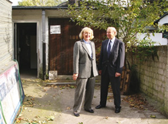 1964년 "이중 차고" 앞에 있는 회사 설립자 Günter와 Margret Blase