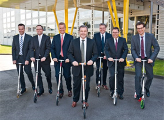 : Tobias Vogel, 베어링 영업 및 마케팅 책임자; Michael Blaß, 부사장, 에너지체인시스템 영업 및 마케팅 책임자; Frank Blase, CEO; Gerhard Baus, 부사장, 폴리머 베어링 사업부장; Artur Peplinski, 부사장, 국제 그룹 개발 및 마케팅 책임자; Harald Nehring, 부사장, 에너지체인시스템 사업부장; Christoph Müller, 부사장, 재무 및 회계 관리 책임자