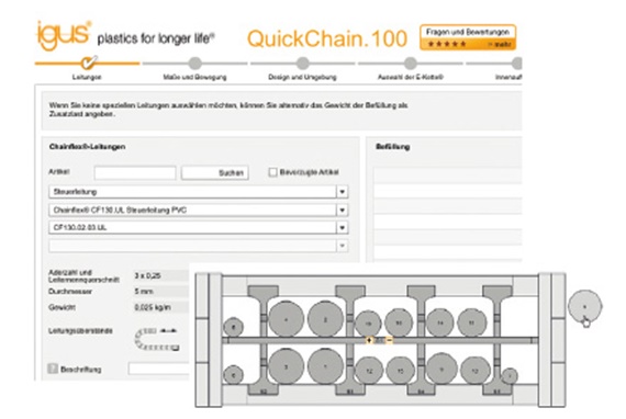 igus®는 43년 전에 플라스틱으로 제작된 최초의 에너지체인을 선보였으며, 오늘날 세계에서 가장 광범위한 유연 케이블이 장착된 가장 다양한 플라스틱 체인을 제공합니다. 다양한 제품을 탐색하기 위해, 고객은 케이블과 커넥터가 있는 체인을 쉽게 선택하고 사용 수명까지 계산하는 온라인 도구를 사용할 수 있습니다. 오늘날 igus®는 에너지 공급 분야의 시스템 제공업체입니다. readychain® 시스템은 완성된, 고객 조립 장치로 제공됩니다.