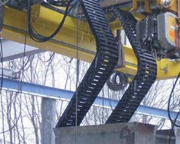 The plastic energy chain guides 200kg/m cables on an offshore drilling vessel