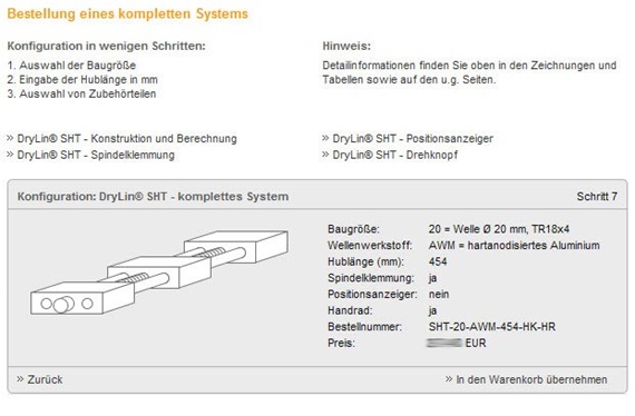 온라인 카탈로그에서 drylin® 시스템 디자인