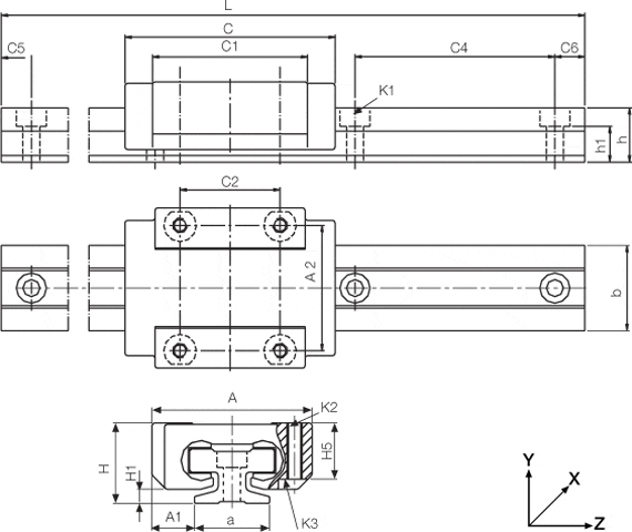 | 주문 번호 | 중량 | L 최대 | a -0,2 | b | C4 | C5 최소 | C5 최대 | C6 최소 | C6 최대 | h | h1 | K1* | ly | lz | Wby | Wbz | m 당 가격 | ||