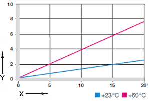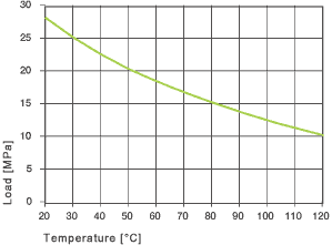 단기간 사용 상위 온도는 +110°C입니다. 온도가 증가하면 iglidur® A180 베어링의 압축 강도가 감소합니다. 그림 02는 이런 연관성을 잘 보여줍니다. 베어링 시스템에서 주로 발생되는 열은 베어링의 마모에 영향을 줍니다. +60°C를 초과하는 온도에서는 추가 고정을 권장합니다.