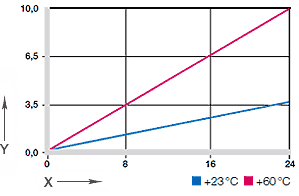 최고 허용 온도는 +120 °C를 초과할 수 없습니다. 마찰로 인해 발생하는 주변 온도 또한 고려 대상이 됩니다. 60°C부터는 베어링이 보어 밖으로 튕겨져 나오지 않도록 베어링을 추가로 기계적으로 고정해야 합니다. 70°C부터는 내마모성 또한 불규칙적으로 감소할 수 있습니다.