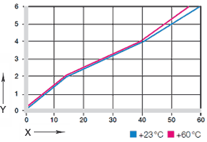 iglidur® 부싱 J350 플레인 베어링은 높은 하중 및 중간 하중에 적합합니다. 그림 03은 온도에 따른 변형을 나타냅니다. 단기 응력에 따른 소재의 반응이 여기에 표시됩니다. 약 60MPa일 때에만 주변 온도의 차이가 이 상황을 뚜렷하게 나타냅니다.