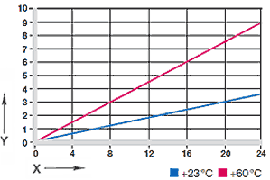 그래프 03은 방사형 하중이 적용된 iglidur® R의 탄성 변형을 보여줍니다. 23MPa의 최대 허용 하중에서 변형은 4% 정도입니다. 플라스틱 변형은 이 값까지 무시될 수 있으나, 다만 노출 시간에 따라 다릅니다.