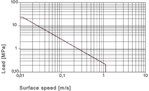 최대 권장 표면 정압은 기계의 소재 매개변수를 나타냅니다. 마찰에는 영향을 미치지 않습니다. 온도가 증가하면 iglidur®R 플레인 베어링의 압축 강도는 감소합니다. 그림 02는 이런 연관성을 잘 보여줍니다.