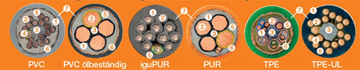 컨트롤 케이블, 모터 케이블, 서보 케이블, 측정 시스템용 케이블, 광케이블, 동축 케이블, Profibus, Ethernet, Profinet, USB, DeviceNet, CC-Link, ROHS, DESINA, CE, UL, CSA, 클린룸, 30V, 300V, 600V, 1000V …