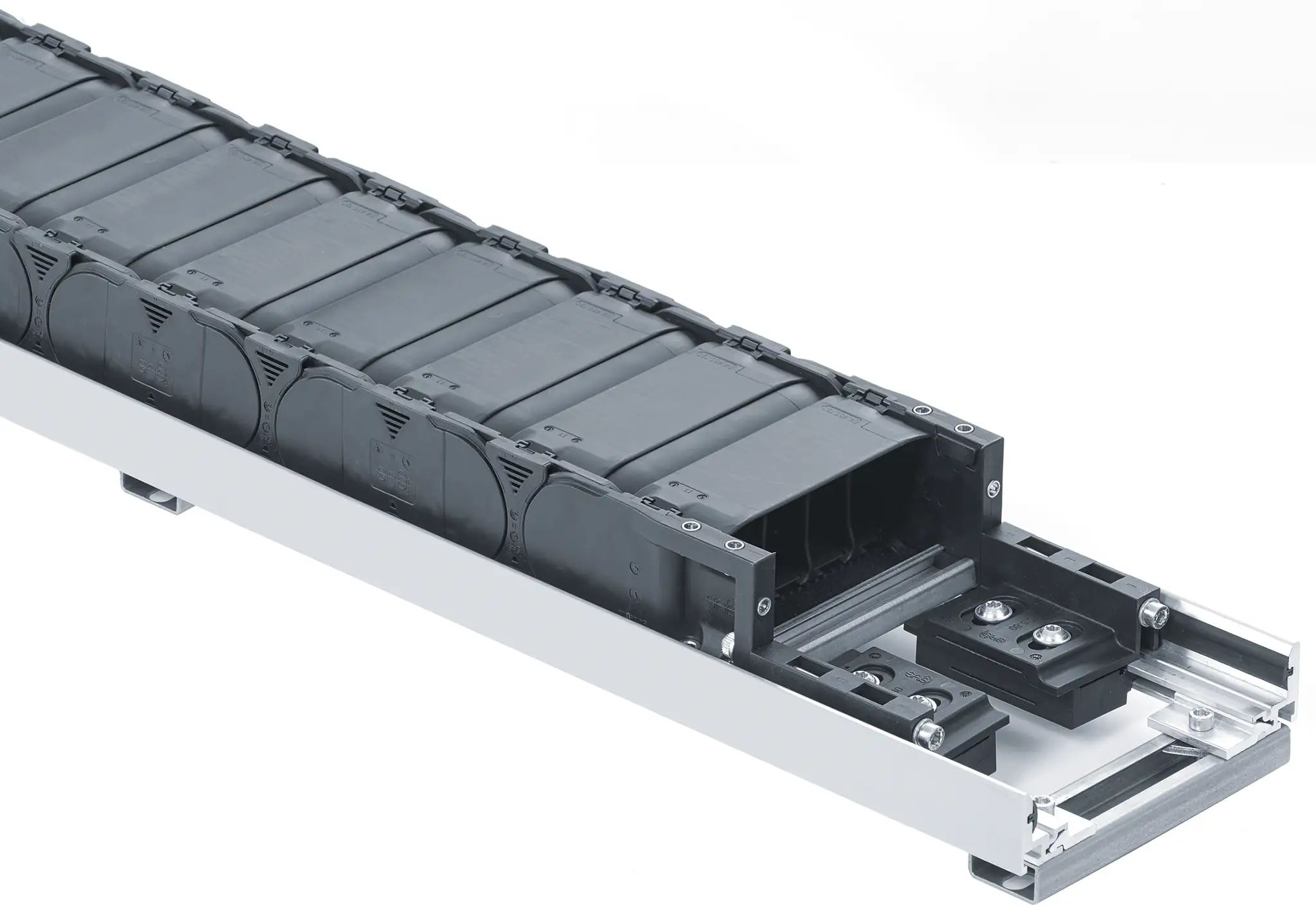 - energy chain easily connects to aluminium support tray using plastic fixed end modules