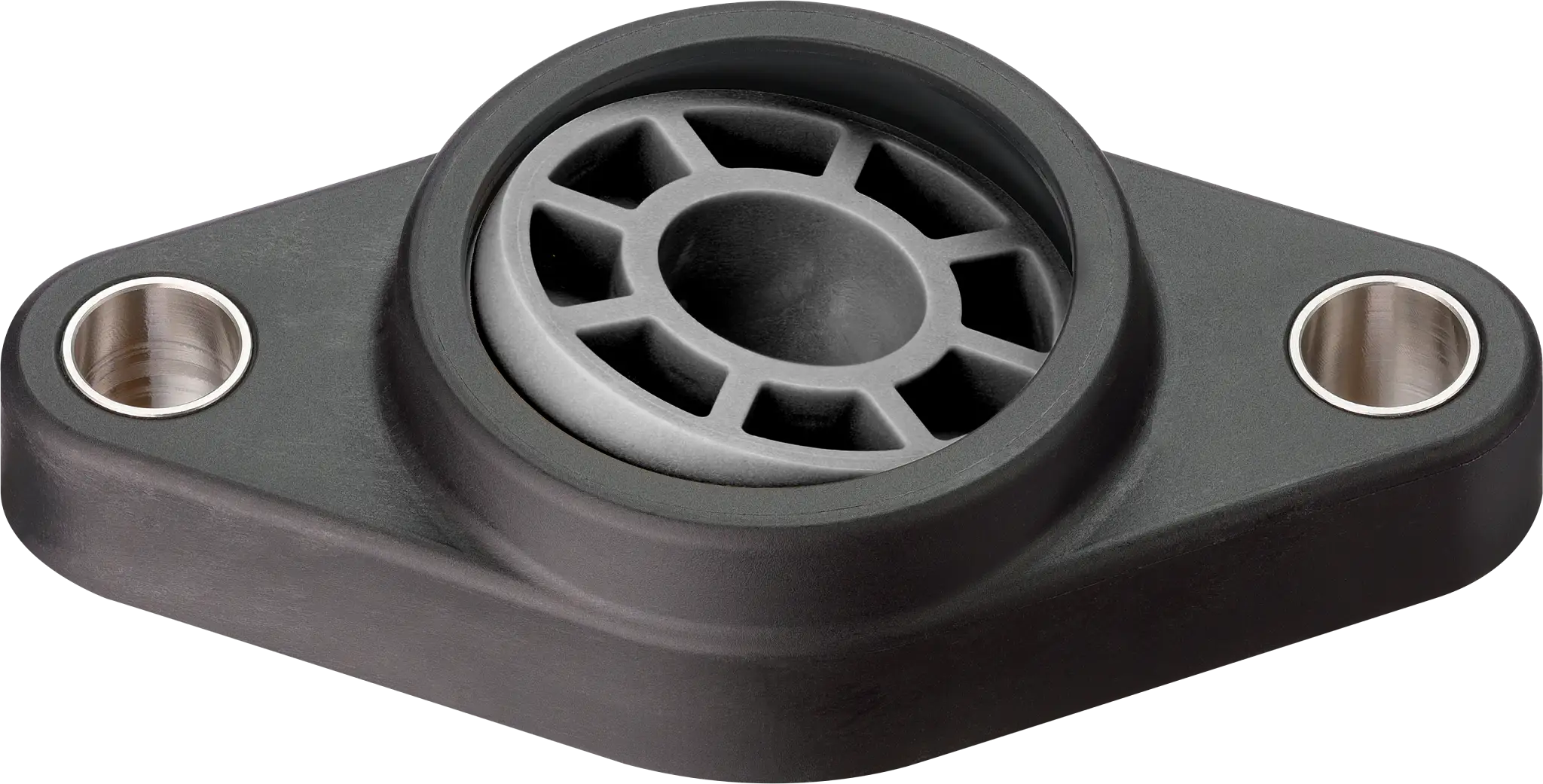 An outstanding feature of the igubal 2-hole flange bearings is their self-lubricating ability. The bearing insert is equipped with a lubricant-free material that ensures continuous lubrication and thus minimizes maintenance requirements. This not only helps to reduce operating costs, but also ensures a constant lubrication level.